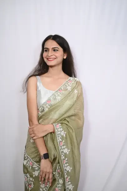 Embroidered, Self Design, Embellished Bollywood Tissue Saree (Light Green)