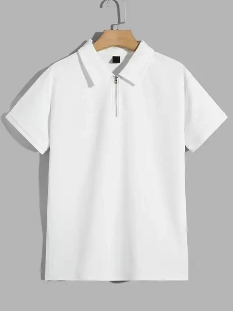 Men Solid Polo Neck Polyester White T-Shirt